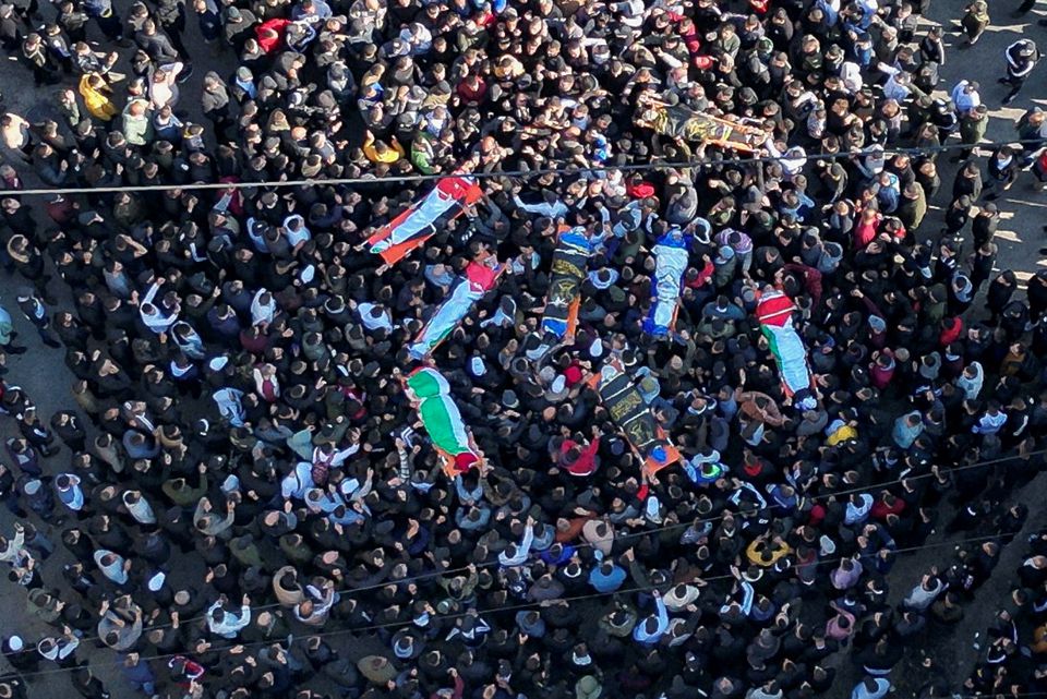1月26日,在傑寧,哀悼者們抬着襲擊中喪生的巴勒斯坦人的屍體,圖自路透社