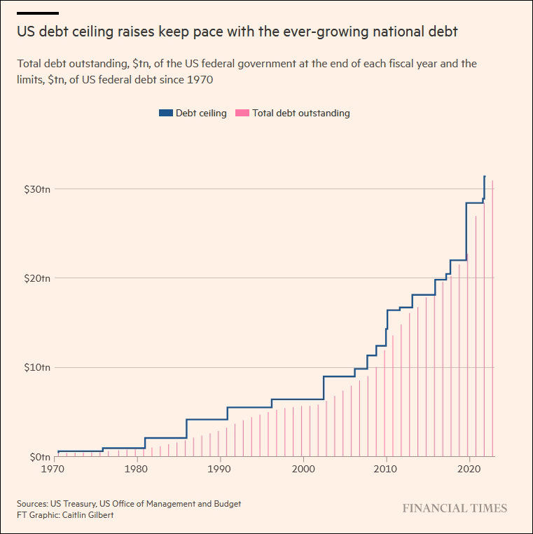 自1970年以來一直在提高的美國債務上限 《金融時報》報道截圖