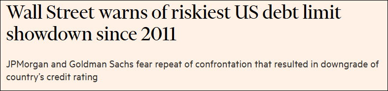(觀察者網訊)據英國《金融時報》1月27日報道,美國華爾街多家投資銀行日前警告稱,美國政府正走向2011年以來風險最高的債務危機,國會兩黨日益激烈的對抗和經濟環境的變化可能導致美國發生債務違約,這很有可能引發經濟“嚴重衰退”。