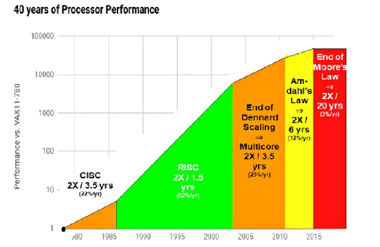 摩爾定律提出以來,至少相同價格能買到的晶體管個數確實是基本按照指數增長的,但程序想要利用這種進步,正變得越來越難。