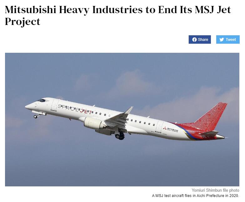 2月初,航空媒體上就流傳着三菱的MSJ(Mitsubishi SpaceJet,三菱空間客機)將徹底終止開發的新聞,三菱還在2月6日的聲明中對此予以了否認,稱其為謠言。