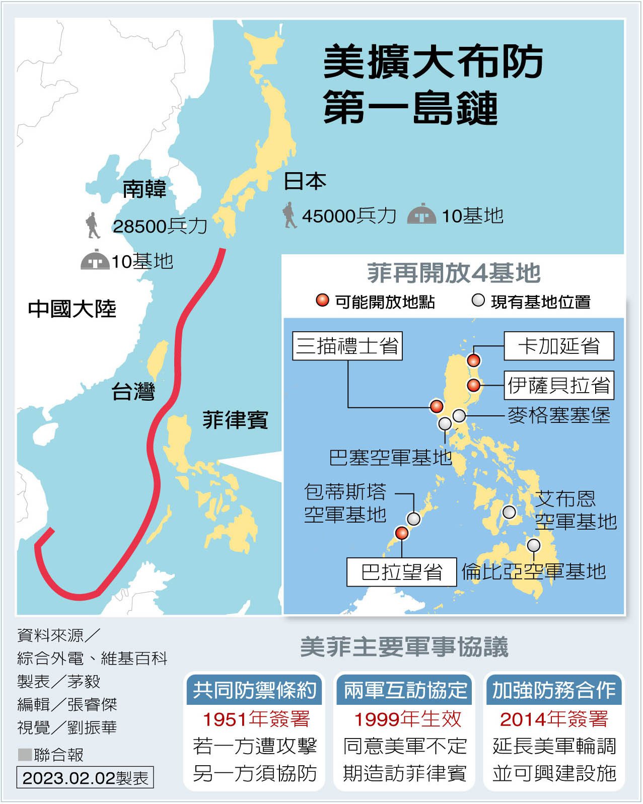 一是菲律賓是美國島鏈戰略不可或缺的環節。菲律賓地處西太平洋與南海的交匯處,扼守着巴士海峽等由南海通往太平洋的多條戰略通道,是美國第一島鏈戰略的關鍵環節,決定着美國將中國影響力封堵在第一島鏈內的戰略成功與否。特別是隨着進入21世紀以後中國突破第一島鏈的能力不斷增強,美國對鞏固並強化島鏈戰略的戰略意願和需求也明顯提升。