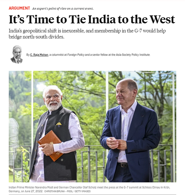 該提議需要重新引起重視。加強七國集團,同時保持其地緣政治民主化方向,值得進行更深入的討論。讓新德里遠離莫斯科,使其能夠與北京競爭,長期以來這一直是美國的目標。這也應該是七國集團的目標。