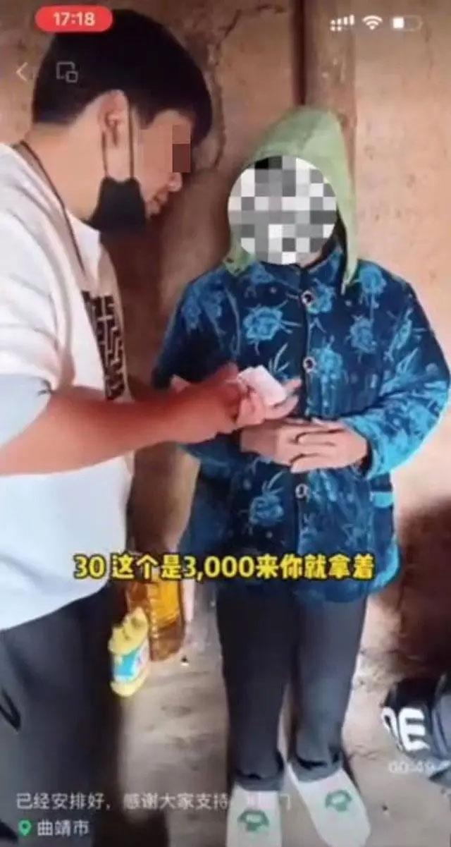 “1、2、3……這個2000元我送給那個孤兒,然後這個3000元你就拿着,過兩天給孩子上學時候用……”視頻中,博主一邊將“好心人資助的3000元現金”交給旁邊的老人,一邊叮囑她要把錢放好。而視頻的文案則寫着:“已經安排好,感謝大家支持”。
