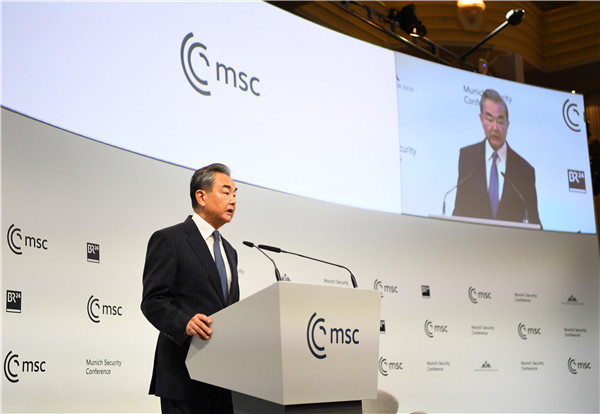 當地時間2月18日,中共中央政治局委員、中央外事工作委員會辦公室主任王毅在德國出席慕尼黑安全會議並發表主旨講話(圖源:中國外交部網站)