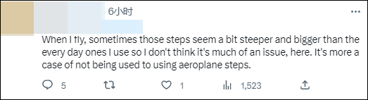不過,也有人努力為拜登的尷尬摔倒“找台階”:“飛機台階似乎比我每天爬的樓梯更陡更大,所以我覺得這不是什麼大問題,這更像是一個不適應飛機舷梯台階的例子。”