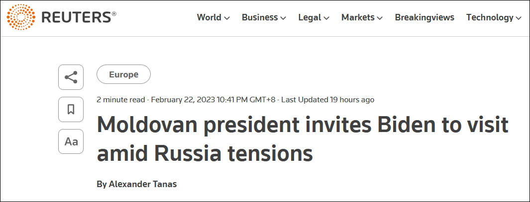 據路透社報道,摩爾多瓦總統桑杜當地時間週二(21日)在波蘭與美國總統拜登會晤,並盛情邀其來訪之際,俄總統普京同日籤令,將一份2012年簽署的法案中涉及摩爾多瓦主權問題的部分視作無效。