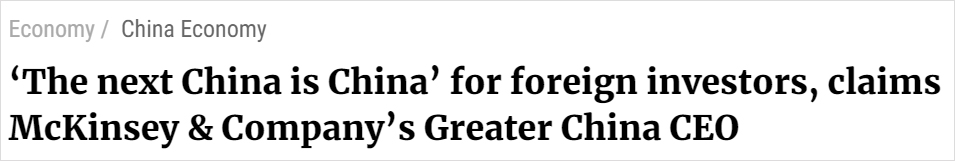 麥肯錫中國區主席:對外國投資者來説,下一個“中國”還是中國
