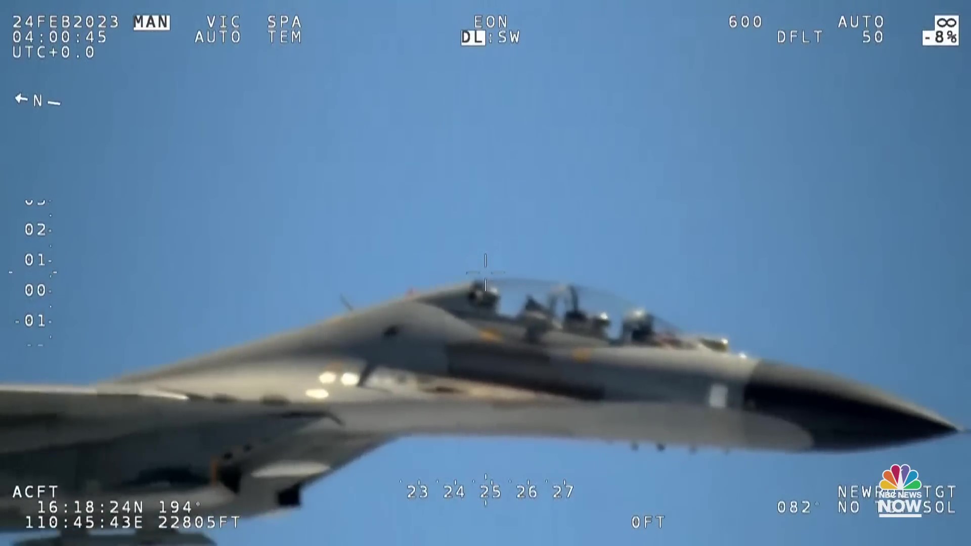 NBC報道截圖 圖為伴飛美軍偵察機的解放軍戰機