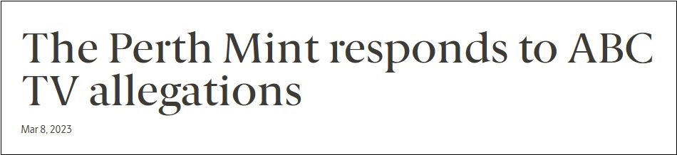 對此,珀斯鑄幣廠3月8日回應稱,出售給中國客户的金條的黃金純度和價值沒有任何問題。在任何時候,珀斯鑄幣廠生產和銷售的一公斤9999金條都至少含有99.99%的黃金,符合規格。