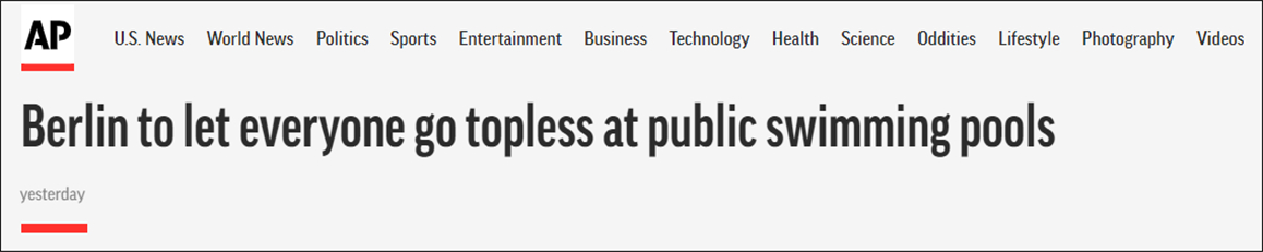 追求性別平等權利,德國柏林允許女性在公共游泳池裸露上身