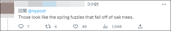 當然,也有人質疑起報道的真實性,稱那些蟲子狀東西“看起來像是春天的時候從橡樹上掉下來的絨毛”。