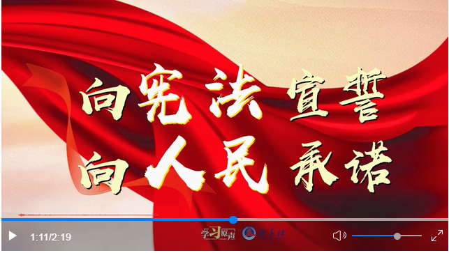 “我宣誓:忠於中華人民共和國憲法,維護憲法權威,履行法定職責,忠於祖國、忠於人民,恪盡職守、廉潔奉公,接受人民監督,為建設富強民主文明和諧美麗的社會主義現代化強國努力奮鬥!”