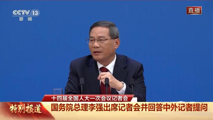 3月13日上午十四屆全國人大一次會議閉幕後,國務院總理李強在人民大會堂三樓金色大廳出席記者會並回答中外記者提問。