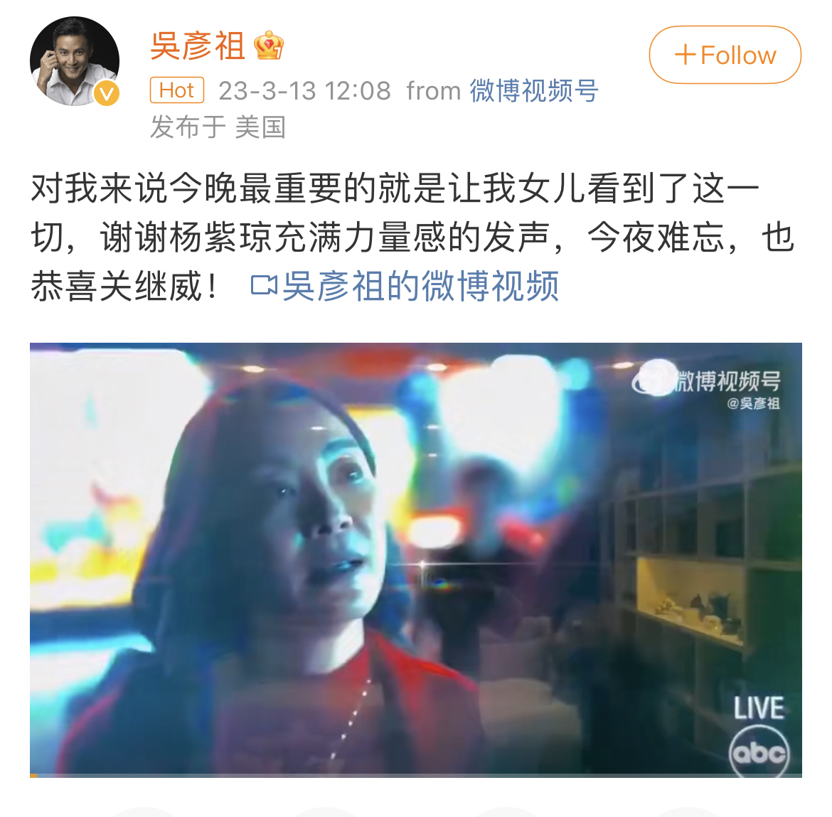 正如楊紫瓊拿下奧斯卡影后之後,美籍華裔男演員吳彥祖在微博的發文:“對我來説今晚最重要的就是讓我女兒看到了這一切,謝謝楊紫瓊充滿力量感的發聲。”《瞬息全宇宙》是拍給亞裔看的。