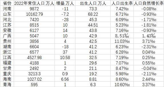 根據第一財經記者梳理發現,目前已有15個省份公佈了2022年的人口數據。在15個省份中,有11個省份實現常住人口正增長。從出生人口來看,各省人口出生率全部下滑,人口死亡率普遍略有上升,河南等地人口自然增長率多年來首次轉負。