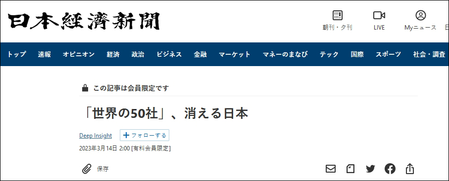 “市場相關人員熱烈討論‘全球漂亮50’話題的日子已經不遠,現在就能想象到屆時日本企業將從世界最卓越的50家企業中消失的光景。”文章最後寫道,“不想看到的現實正在走來。”