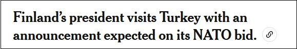 《紐約時報》:芬蘭總統訪問土耳其,預計將就芬蘭加入“北約”發表聲明