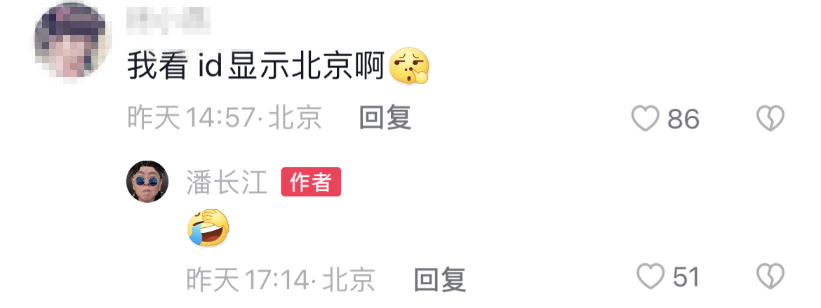 評論區裏,網友發現其賬號IP屬地顯示為北京。