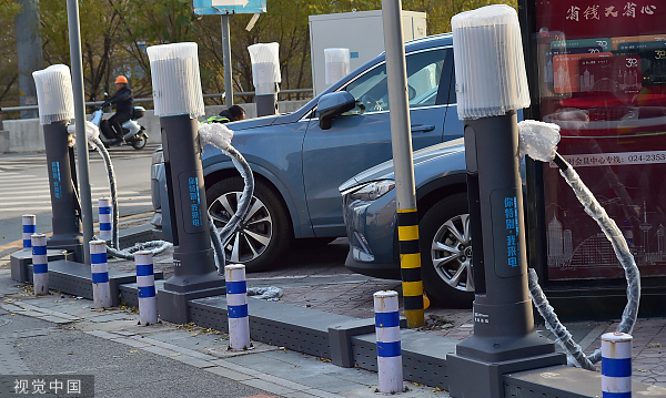 瀋陽增量投入電動汽車公共充電樁,方便市民充電。圖源:視覺中國