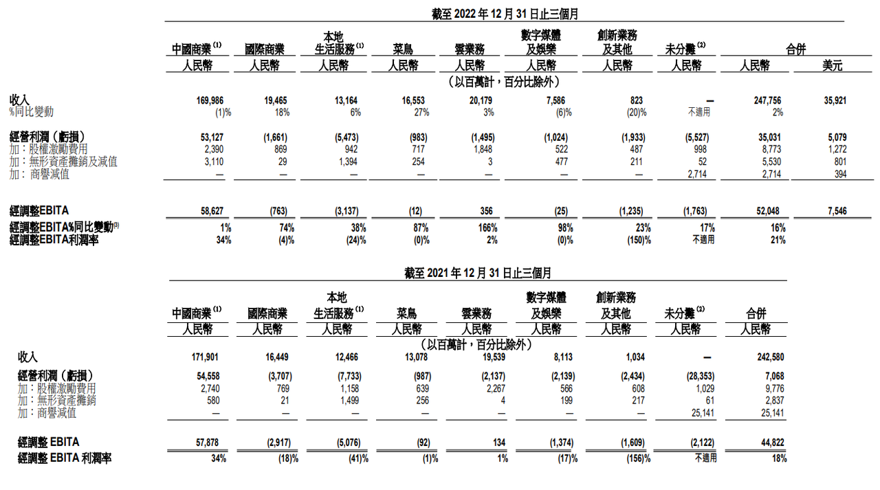 財報顯示,在自然年2022年的最後三個月,淘寶和天貓的線上實物商品GMV(剔除未支付訂單)錄得同比下降。