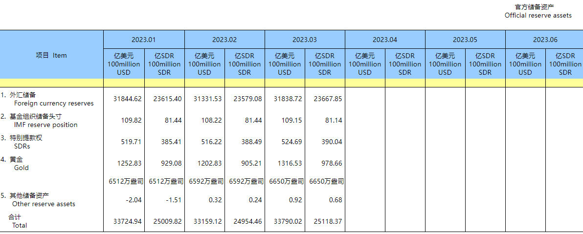國家外匯管理局網站4月7日消息,國家外匯管理局公佈2023年3月末外匯儲備規模數據。