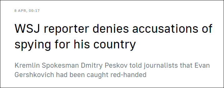 俄正式指控《華爾街日報》記者在俄從事間諜活動