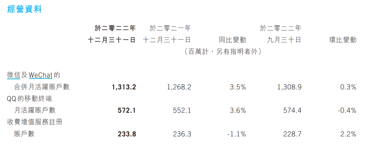 財報數據顯示,作為騰訊的核心產品,QQ和微信有龐大的用户羣體,整體仍保持增長態勢。截至去年年末,QQ移動終端月活用户數達到5.72億,同比增長3.6%;微信及WeChat月活用户數多達13.13億,同比增長3.5%。雖然QQ和微信的故障很快被修復,但其影響仍不容小視。