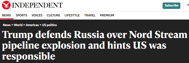 特朗普暗示美國炸燬了北溪管道:我不想讓我們國家陷入困境,反正不是俄羅斯干的