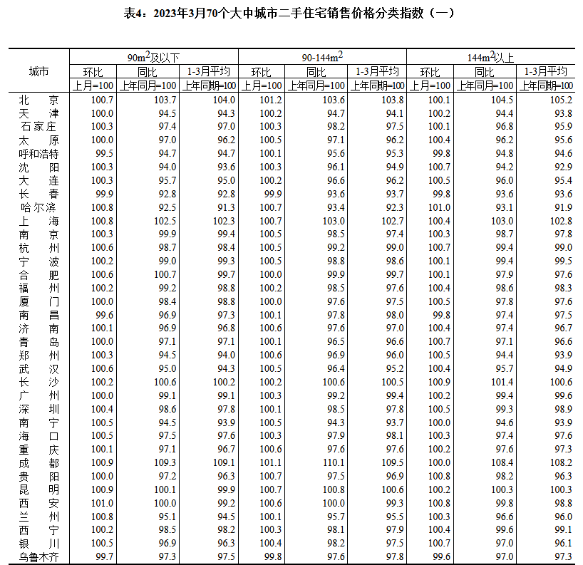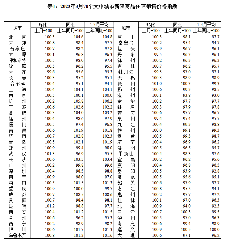 2023年3月份70個大中城市商品住宅銷售價格變動情況