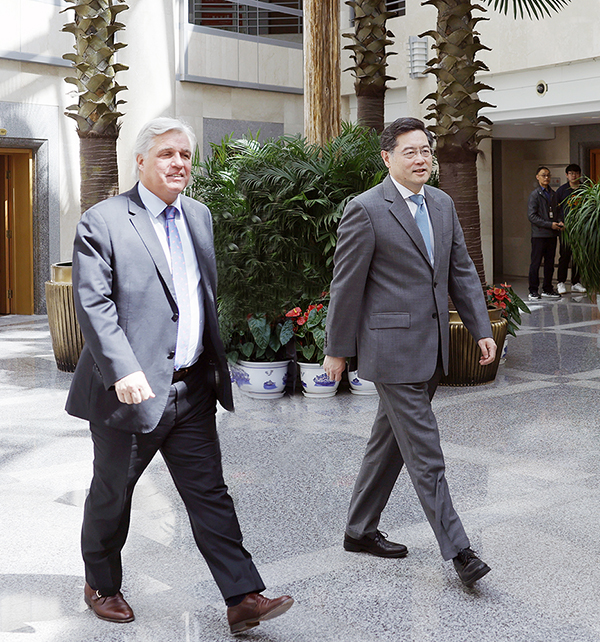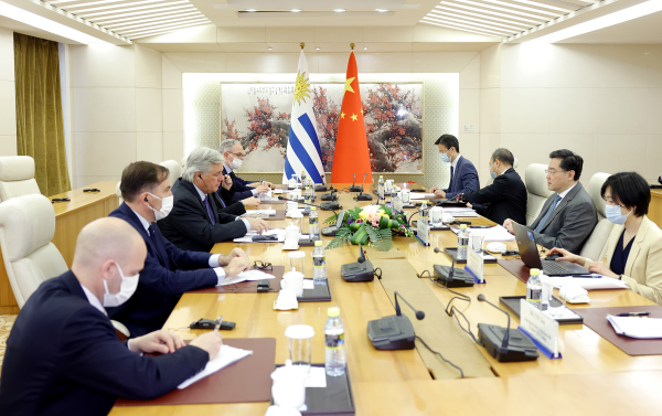 秦剛同烏拉圭外長布斯蒂略舉行會談