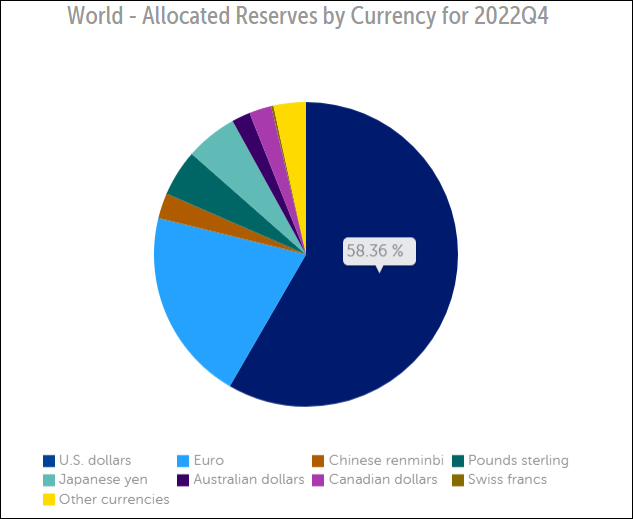 IMF的官方外匯儲備貨幣(COFER)數據,美元佔全球外匯儲備的58.36%