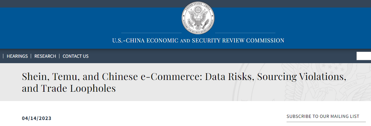 當地時間4月14日,美國國會下屬的“美中經濟與安全審議委員會”(USCC)發佈分析師報告。報告聲稱,Shein和Temu等中國電商平台,存在所謂數據安全、採購違規、利用貿易漏洞等問題。