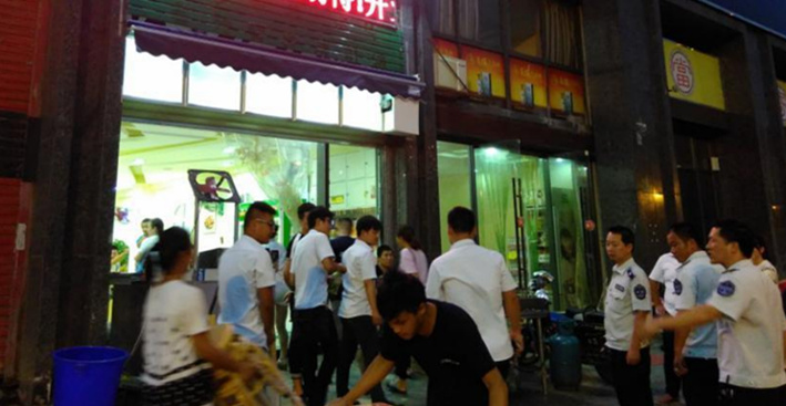 例如,圖片中這家店是第一天開業,當隊員把店面圍起來準備把桌椅板凳往店裏面搬時,店長立馬衝出來,把副隊長請到一邊,敬上一根黃鶴樓的煙,副隊長擺了擺手,表示自己不抽煙,店主懇請副隊長網開一面,今天第一天開業,以後絕對不往外擺。店主又請求了一會兒,副隊長説:“看到你是第一天開業,今天就網開一面,以後絕對不許,把電話號碼給我。”店主便笑了笑,給了他,隨後隊員便撤離了。