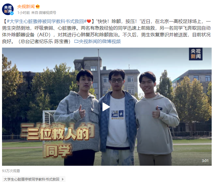 2022年10月,中國紅十字基金會向國際關係學院捐贈的應急救護一體機成功施救一名學生