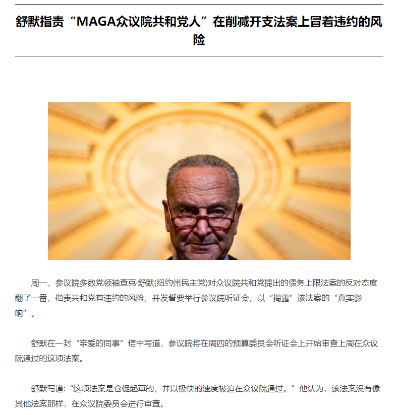 儘管在4月時,美國聯邦預算責任委員會發表了一份聲明,稱讚共和黨人限制預算提案是在債務談判中現實且受到歡迎的一個策略。但據知情人士稱,這份聲明讓白宮的政府人員感到震驚且生氣,認為這個表態鼓勵了共和黨議長麥卡錫近期類似裹脅的做法。