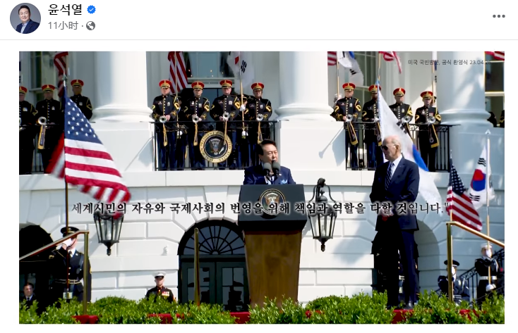 當天,尹錫悦本人也在社交平台發文紀念自己執政一週年。他在臉書發佈一條時長2分42秒的視頻,回顧執政一年來的事件。視頻最後一幕打出“將與國民一道打造自由創新的國家”字樣。他還在Instagram發文稱,過去一年是為建設能由國民做主的新的國家而拼搏的一年,稱今後自己也將繼續為民服務。