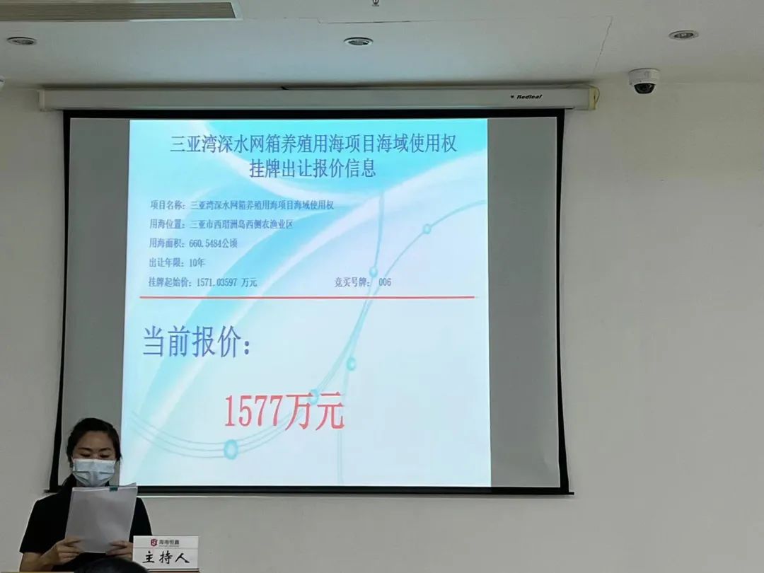據微信公眾號“三亞市自然資源和規劃局”消息,5月10日,海南省首宗經土地超市出讓海域使用權——三亞灣深水網箱養殖用海項目海域使用權以1577萬元被三亞農業投資集團有限公司競得在三亞成交。
