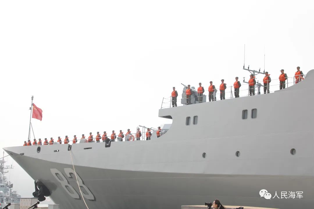 “戚繼光艦遠海遠域實習並訪問越南等4國任務準備完畢,請示起航!”伴隨着雄壯的軍樂聲,戚繼光艦緩緩駛離碼頭。甲板上,學員和官兵精神抖擻,整齊列隊,向祖國和戰友揮手告別。