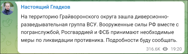報道稱,俄羅斯別爾哥羅德州州長維亞切斯拉夫•格拉徳科夫最先披露了此次行動。他在自己的Telegram頻道上寫道,一個烏軍偵察破壞小組進入格賴沃龍區。