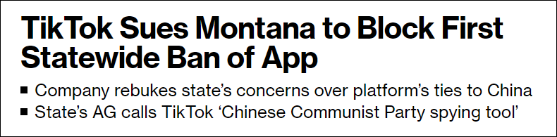彭博社《紐約時報》:TikTok起訴蒙大拿州,稱禁令違憲