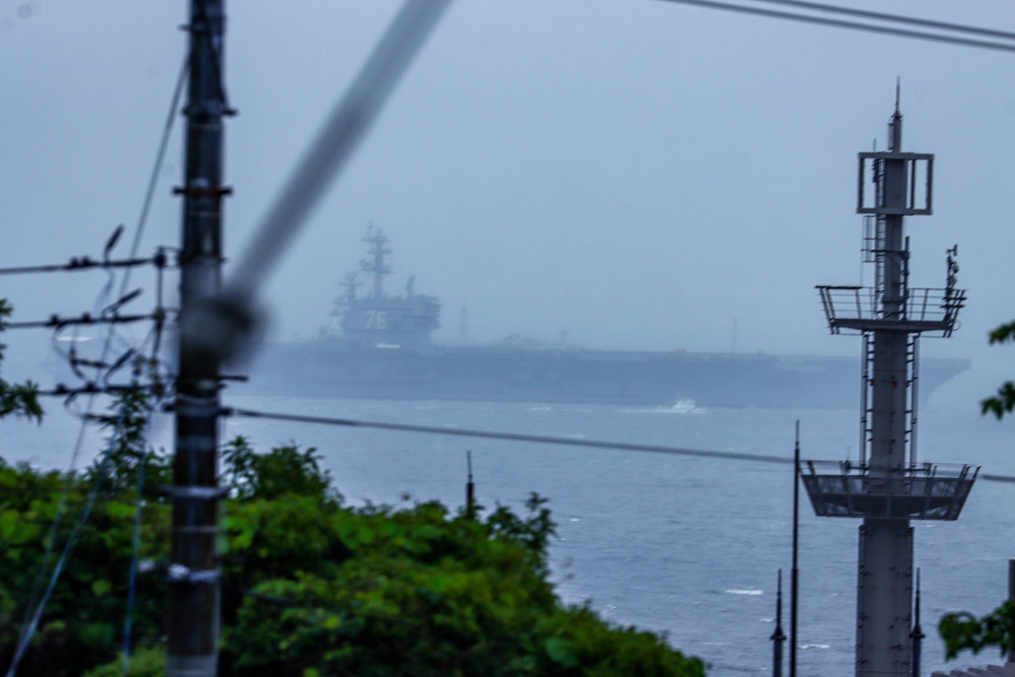 由當地愛好者拍攝的正在出港的“里根”號航母 圖片來源:社交媒體