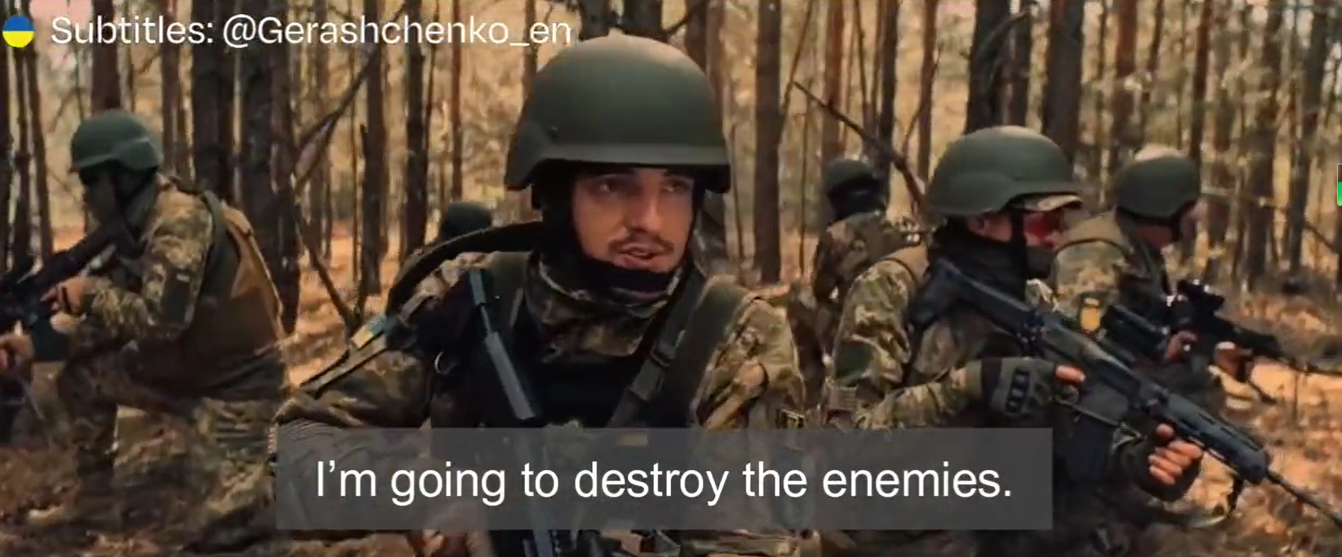 視頻描繪了烏軍士兵備戰的情況並展現了烏軍的武器,出鏡的士兵齊念一段祈禱詞,並高喊“我要去消滅敵人”,稱希望國家和天父保佑其“決定性進攻”和“神聖的復仇”能取得勝利。