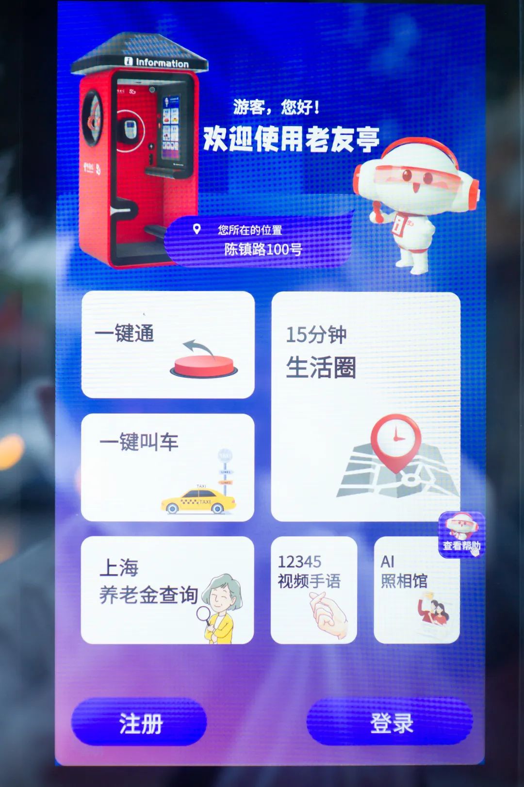 走進這座名為“Hello老友亭”的智能電話亭,裏面不僅有供市民免費呼叫的電話機,還新增了助老智能信息屏,具備一鍵打車、手語客服、查詢養老政策、手機充電等諸多功能。智慧大屏上,“一鍵叫車”的按鈕最受老年人的歡迎,點擊一下,完成刷臉驗證或者直接輸入手機號,系統就會為市民叫來一輛出租車,目的地可以上車之後再與司機溝通,解決了老年人不會使用數字化設備的難題。“以前叫車都要麻煩小輩幫忙提前用手機叫好,現在有了這個亭子,點一點我也會自己叫車了!”張老伯高興地説。