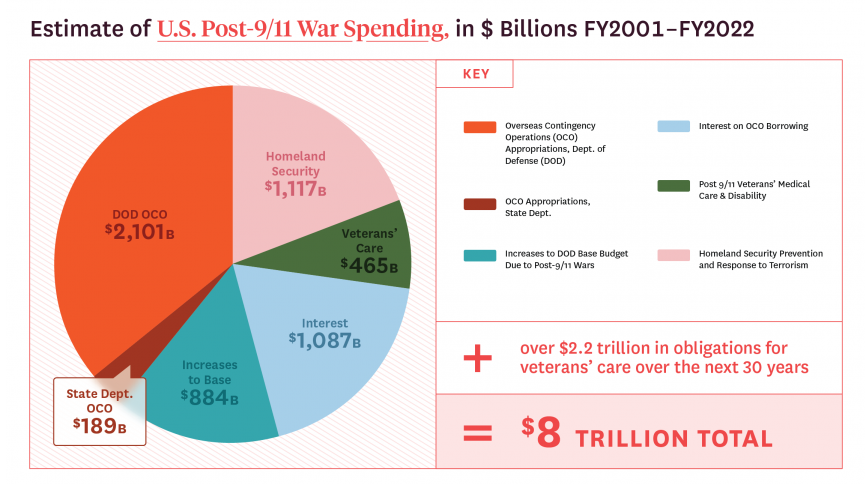 過去20年,美國用於戰爭的財政支出之和約8萬億美元 圖自:沃特森國際和公共事務研究所