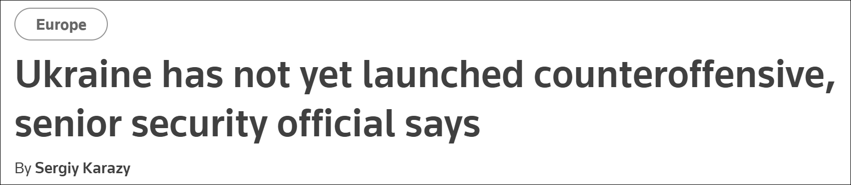 當天,丹尼洛夫駁斥了俄方有關烏軍已開始反攻的説法,稱俄方誤以為烏克蘭在一些前線地區開展的局部推進行動是烏方更大規模行動的開始。