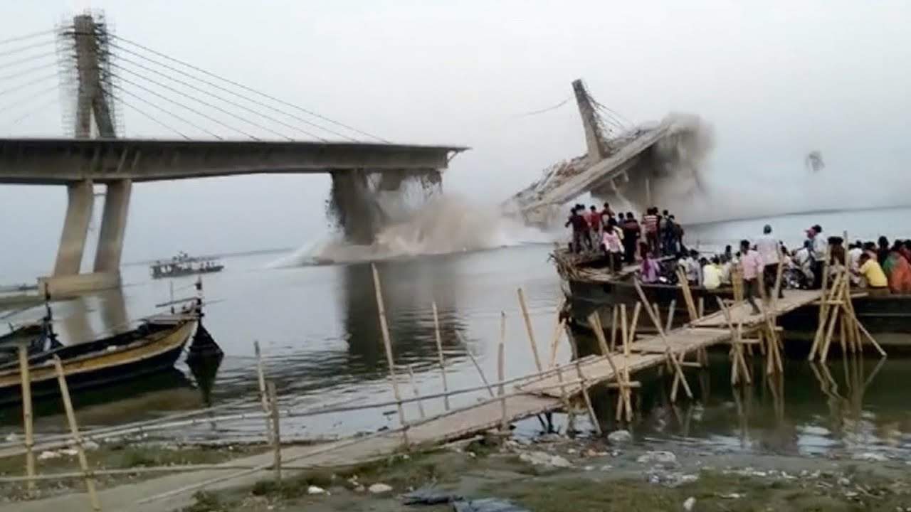 當地時間2023年6月4日,印度比哈爾邦在建的橫跨恆河的阿格瓦尼-蘇丹甘吉大橋再次發生坍塌。圖片來源:社交媒體