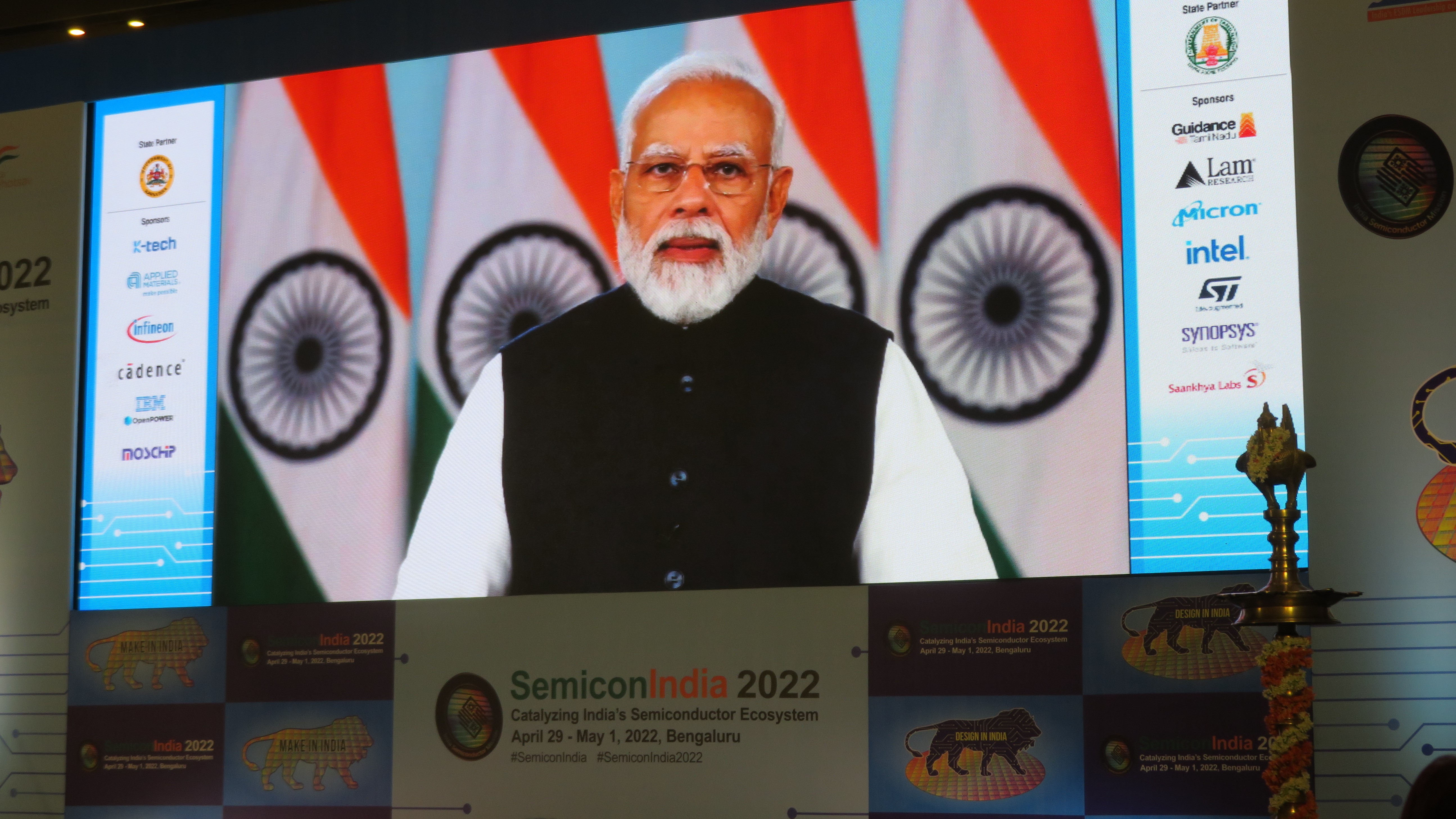 當地時間2022年4月29日,莫迪出席“印度半導體產業2022”活動時發表講話,稱要打造半導體制造中心。圖片來源:路透社