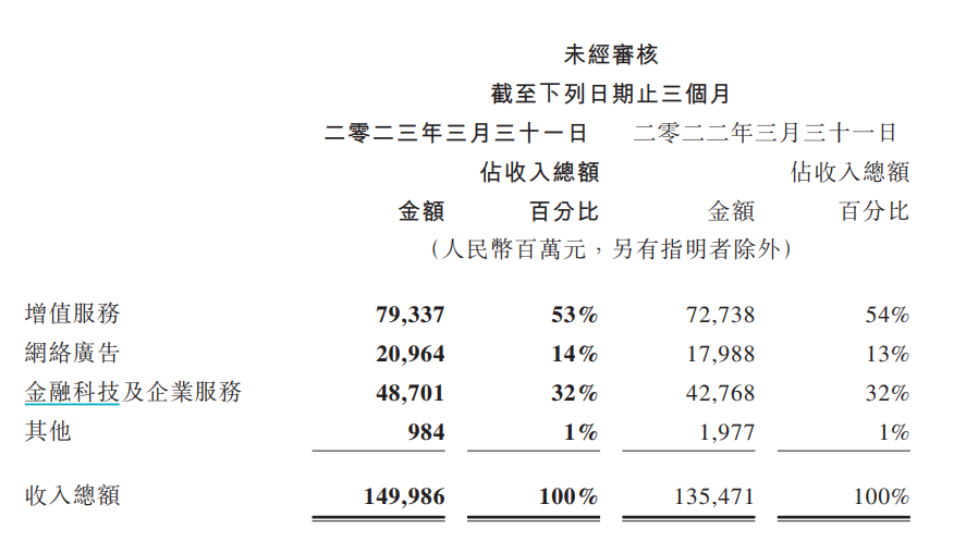 包括遊戲在內的增值服務,為騰訊提供了5成以上的收入 財報截圖