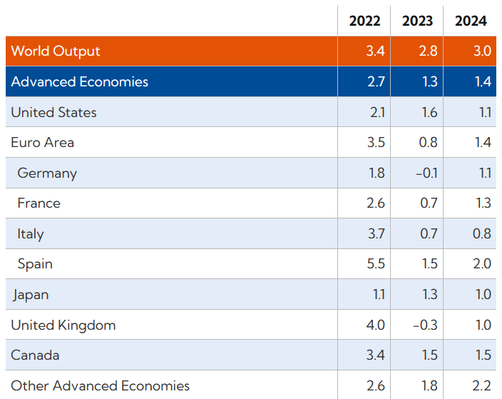 IMF於4月預測的2023年發達經濟體經濟增長預期